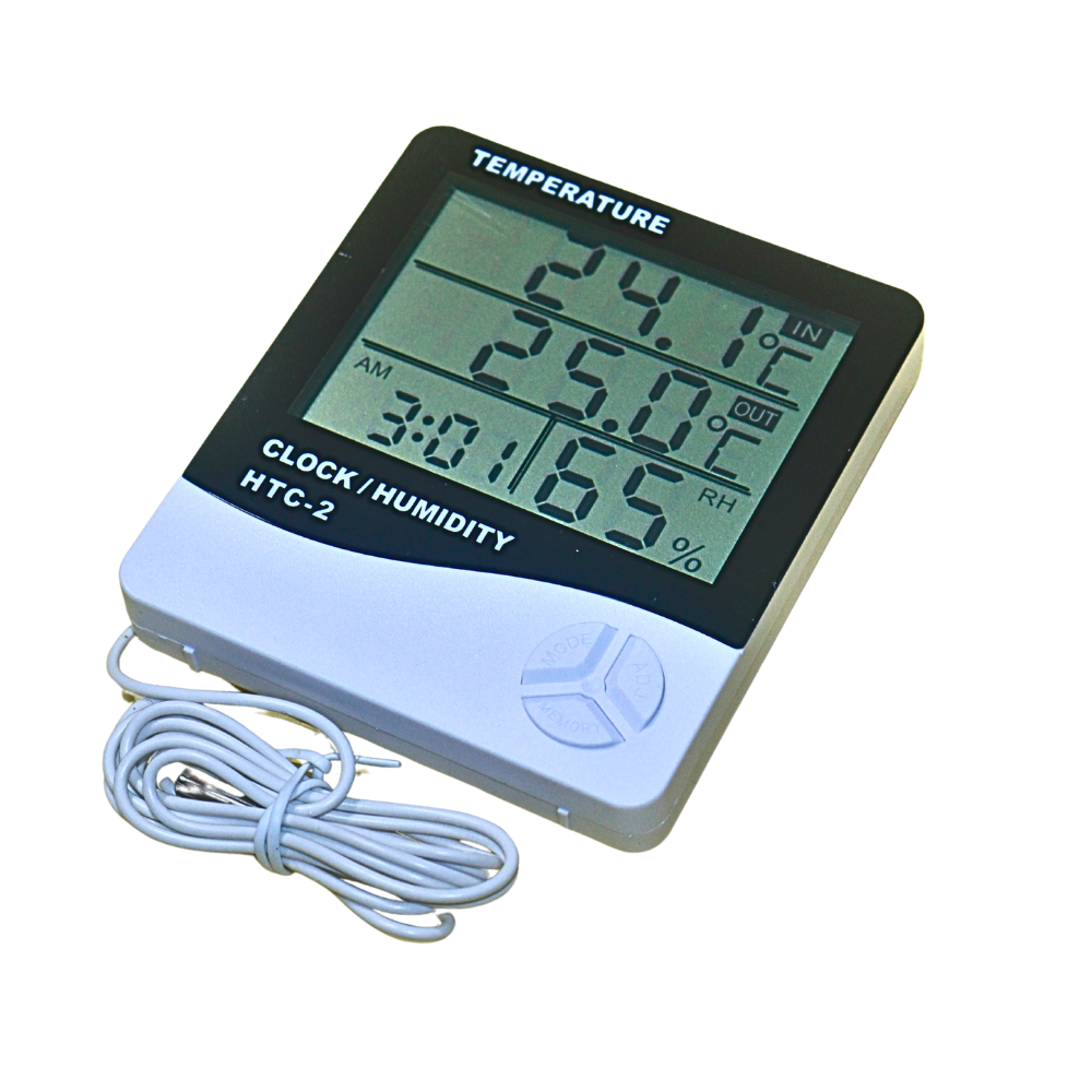 The HTC-2 Digital Alarm Clock is a multifunction smart device that combines Clock + Thermometer + Hygrometer in one. Designed for homes, offices, electronics labs, classrooms, shops, and workplaces—this compact gadget helps you monitor temperature, humidity, and time with high accuracy.